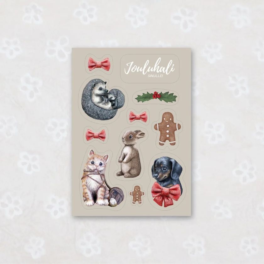 • Kuvitus: kissa, koira, pupu, siili ja muita jouluaiheisia tarroja